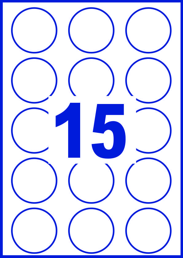 These round labels are 51mm diameter in size and there are 15 on each printable sheet. With 25 sheets in a pack, that's 375 labels in total. Ideal for folders, documents, jars, bottles, gifts, packaging, stickers, brochures...