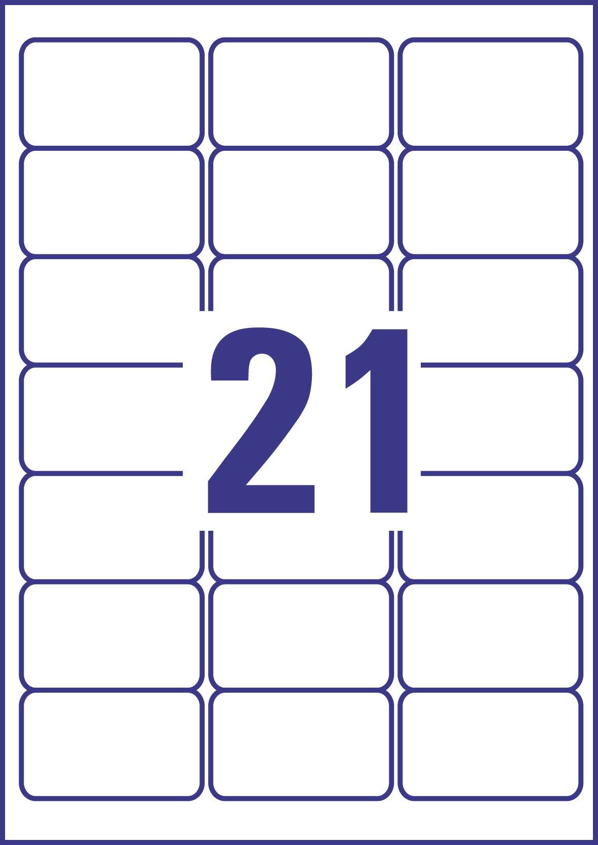 The label format is 63.5 x 38.1mm with 21 labels per sheet.