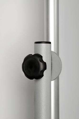 This portable, revolving Bi-Office Evolution whiteboard has a double-sided, lacquered steel magnetic surface ideal for training, teaching and presenting. The board pivots 360° through the horizontal axis and comes on 4 lockable swivel castors for mobility. The board comes with a fixed accessory tray for pens, magnets, erasers and more. This white board measures 1500 x 1200mm.