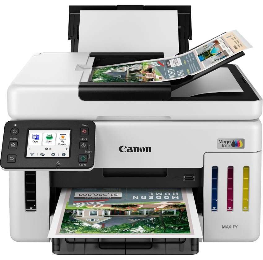 Effortlessly create property portfolios for clients, and easily scan and copy important documents using the 50-sheet automatic document feeder (ADF), all without worrying about running out of ink or paper. Print business cards on either matte or glossy media. Generate invoices reliably, thanks to consistent performance, high speed, and a compact design. Produce high-quality, durable point-of-sale materials, promotional banners, and tags all in-house.