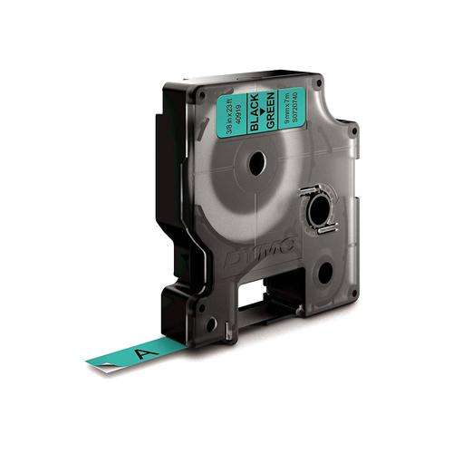 Dymo 40919 D1 9mm x 7m Black on Green Tape