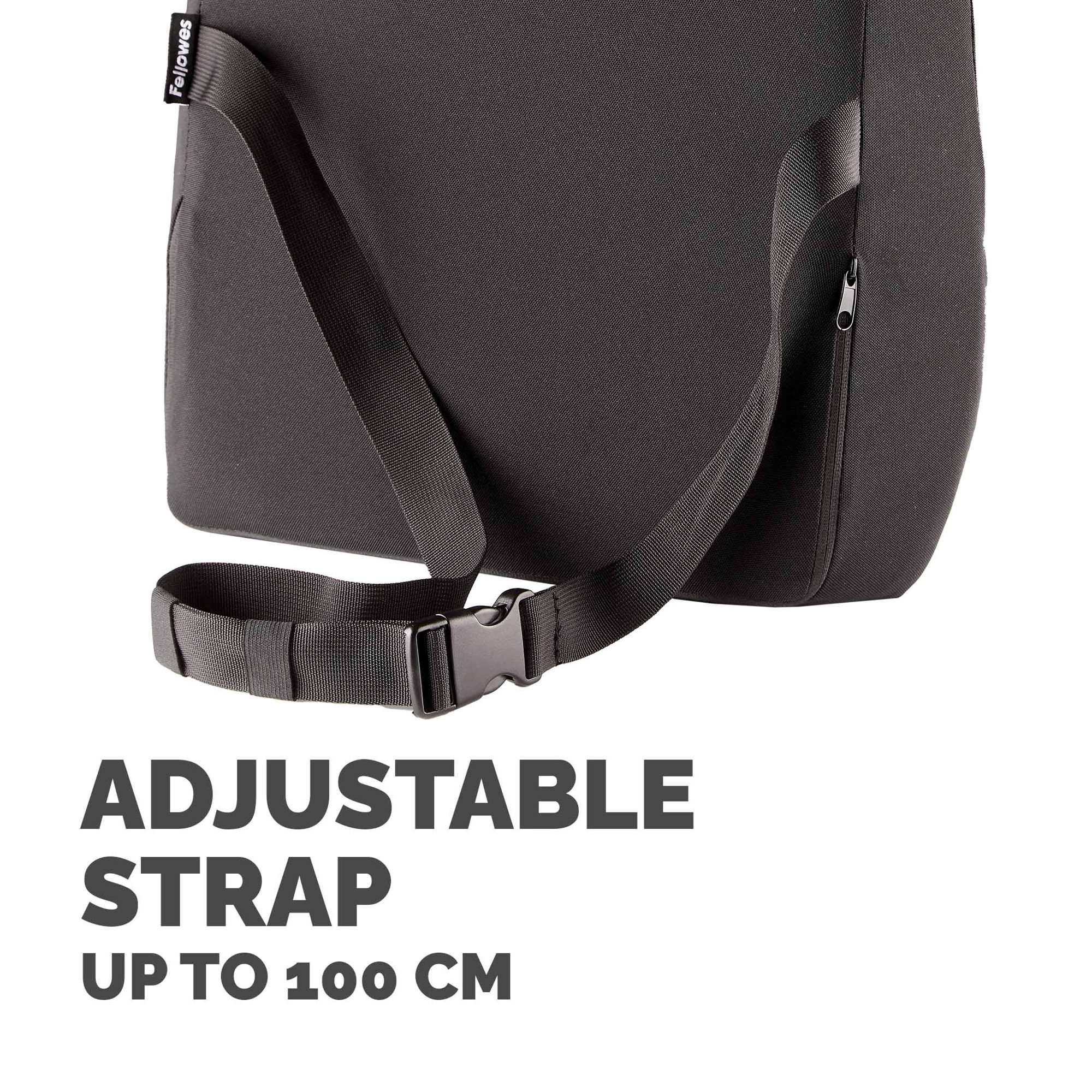 Relieve back discomfort with the Fellowes Breyta Comfort Back Cushion, designed to provide essential support and promote proper ergonomic posture. It features an adjustable strap, measuring 100 cm in length, that securely holds the cushion in place.