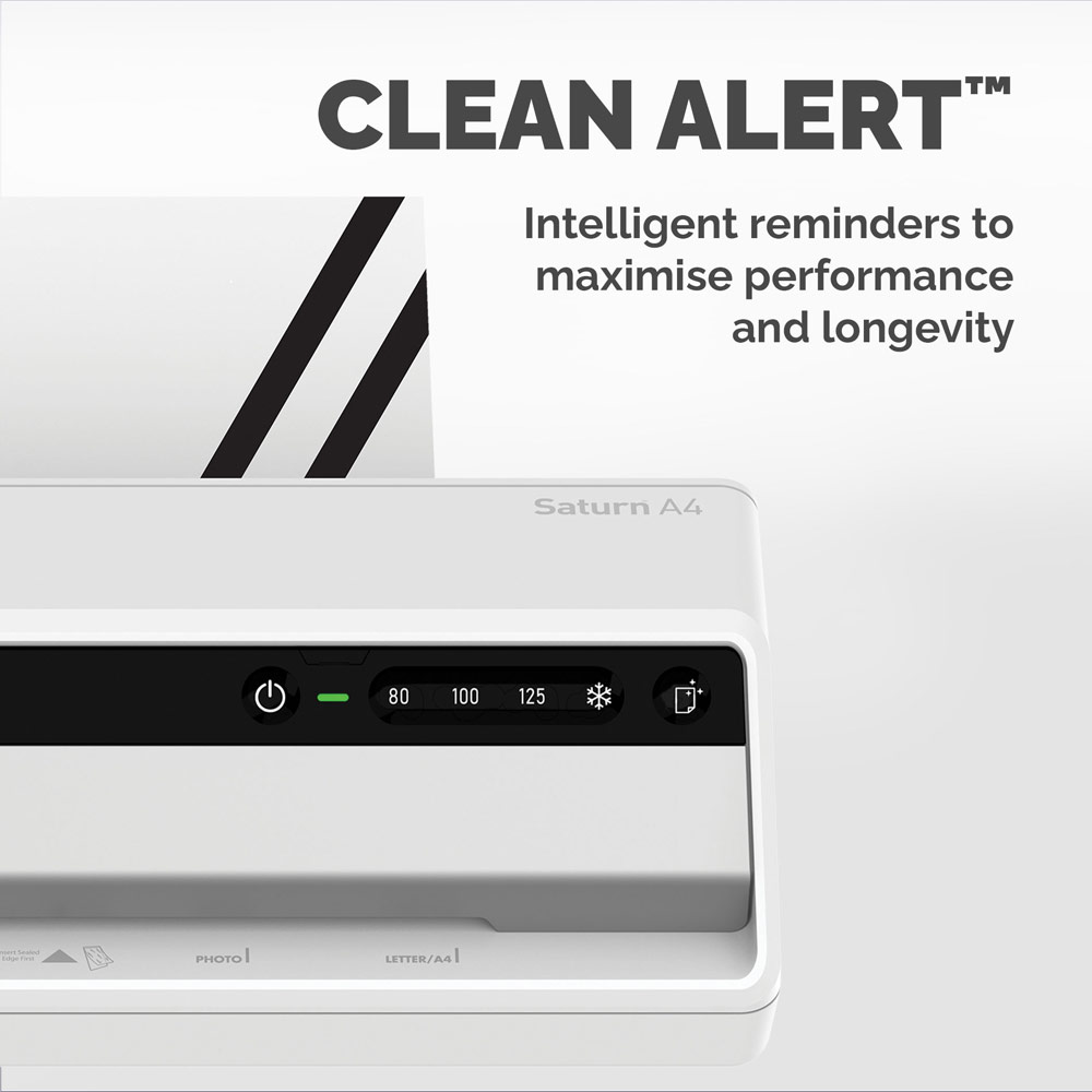 SMOOTH LAMINATION - The Fellowes Saturn A4 laminator ensures jam-free laminating with Fellowes branded pouches and features a release lever which allows you to realign documents that have been misfed into the laminator