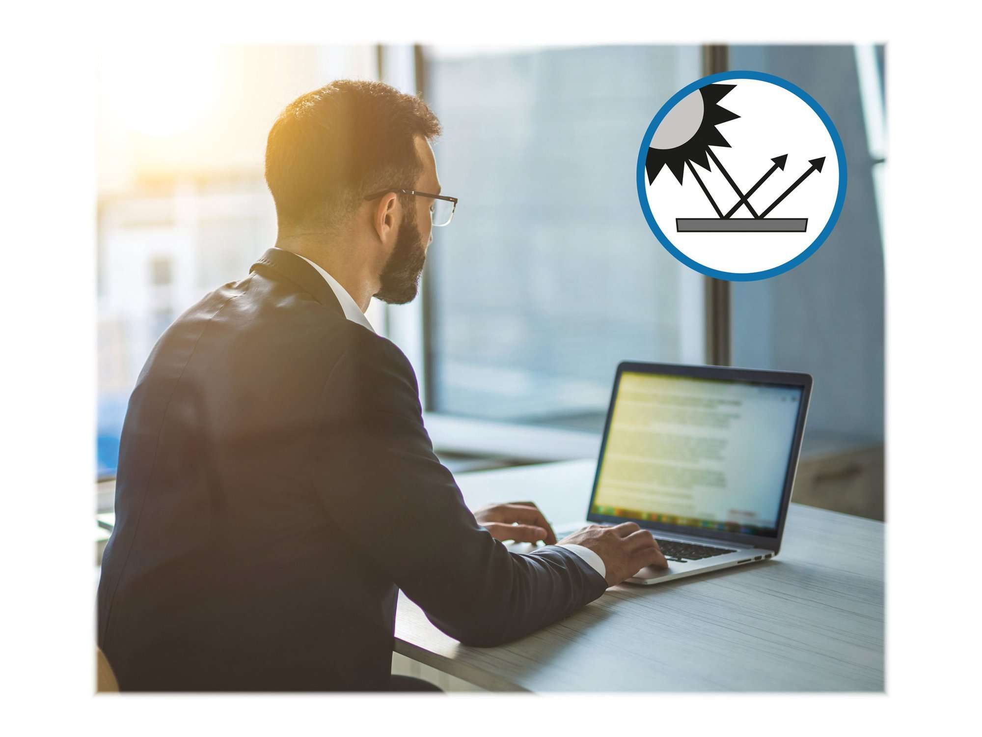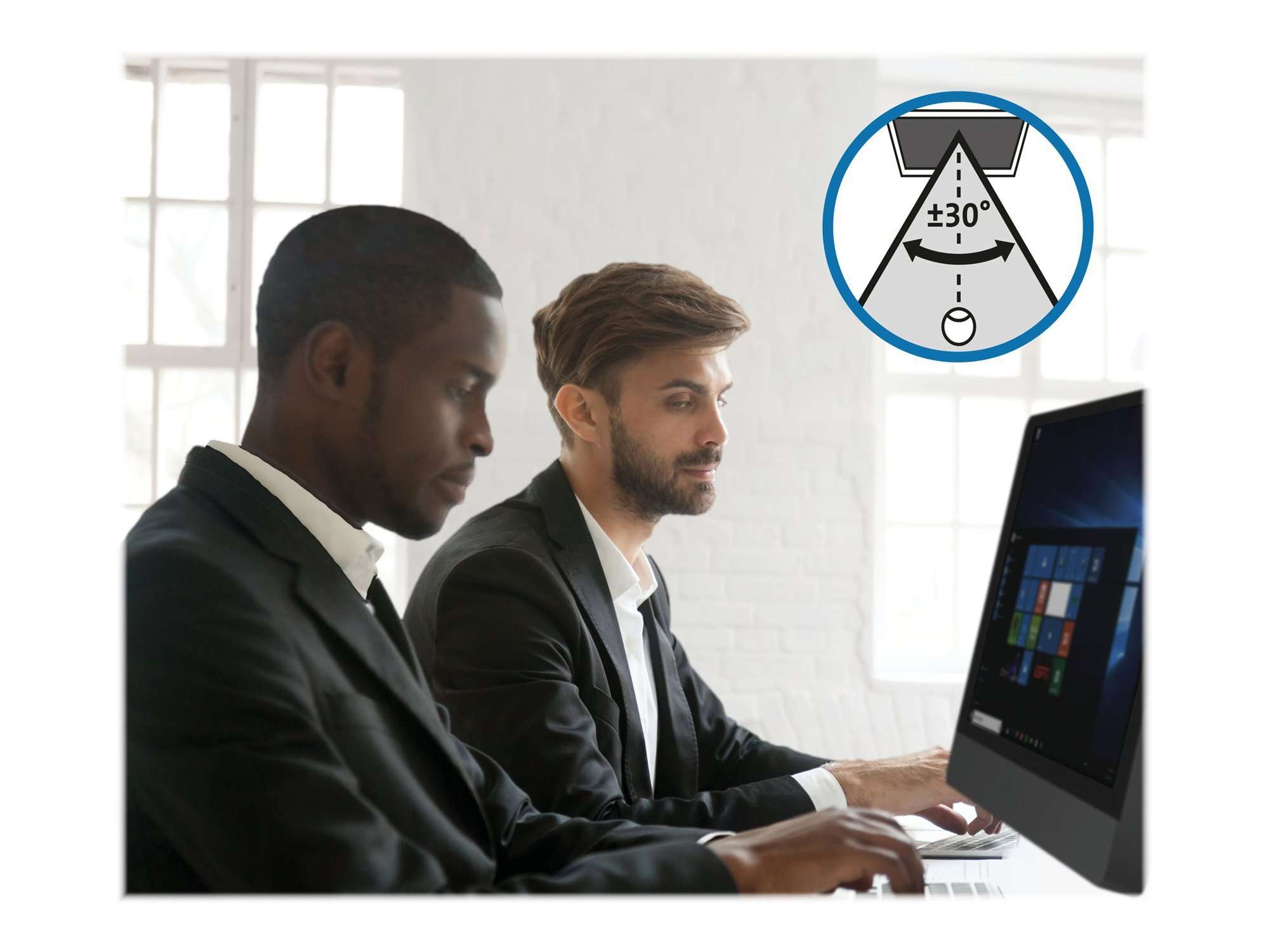 The limited viewing angle narrows the field of vision on the screen to +/- 30 degrees, helping you keep the information on your screen private and reducing the chances of a visual data breach, which is important both in the office or in a public setting.