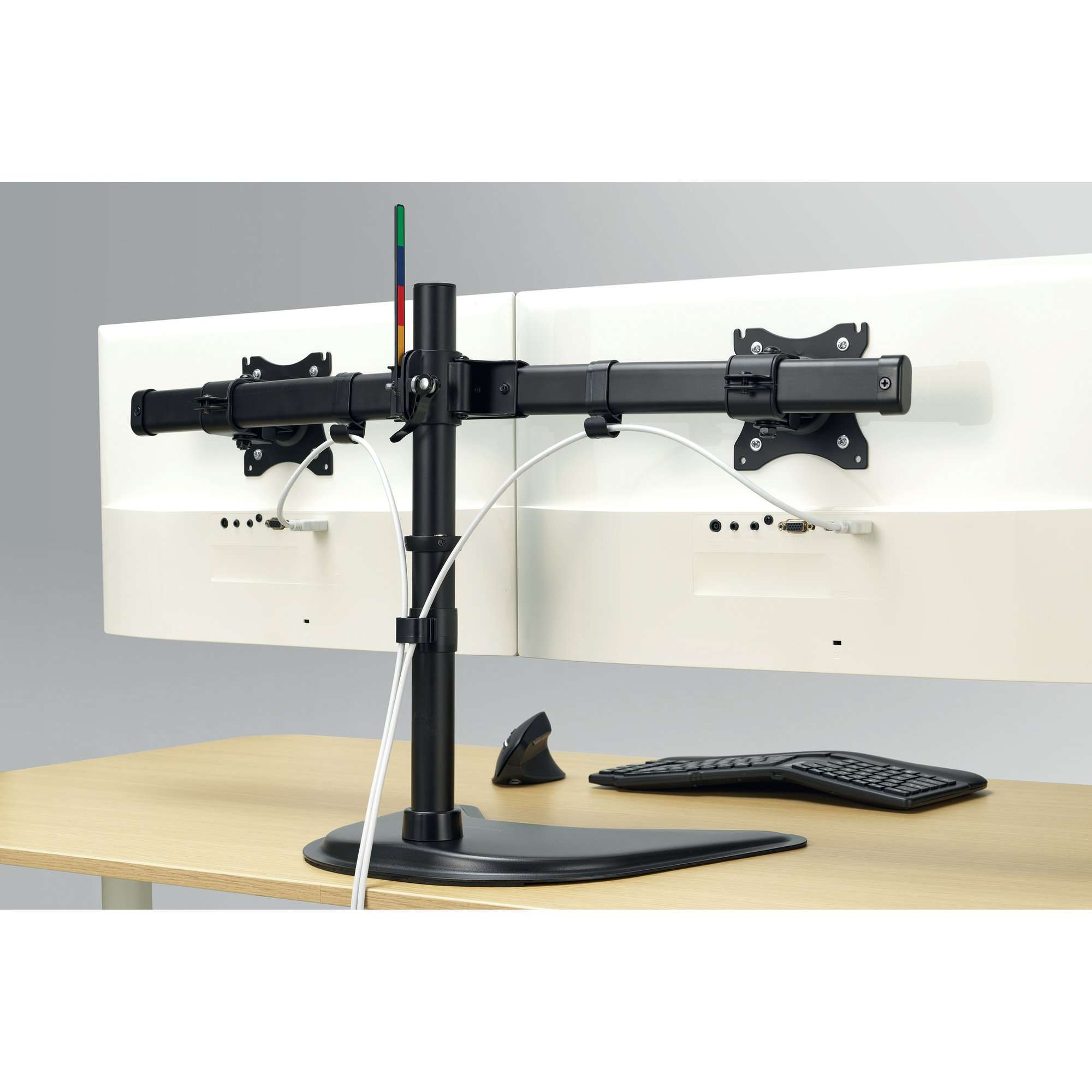 - Accommodates up to 2 x 27" monitors weighing up to 10kg (22lbs) each
