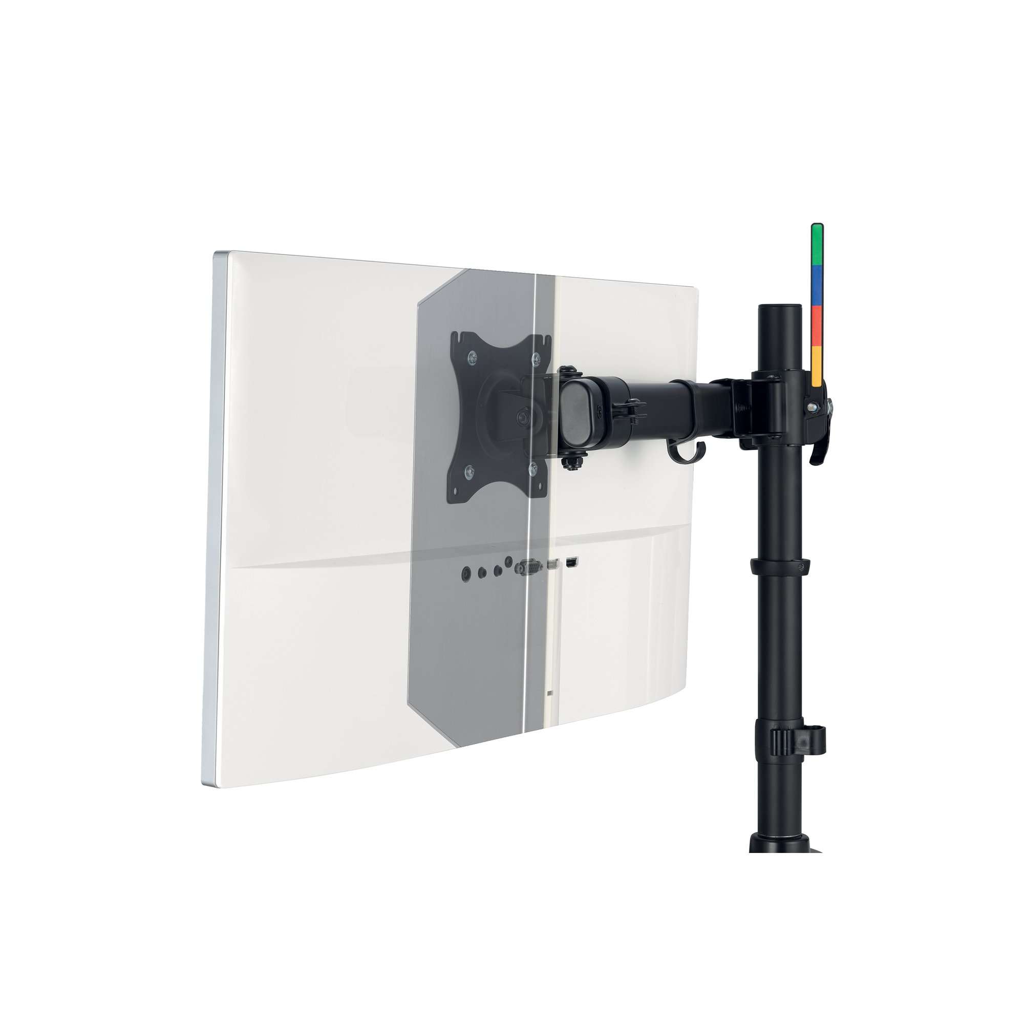 Constructed with durable steel materials, the stand ensures long-lasting reliability. The weighted base provides stability and support, ensuring that monitors remain securely in place.