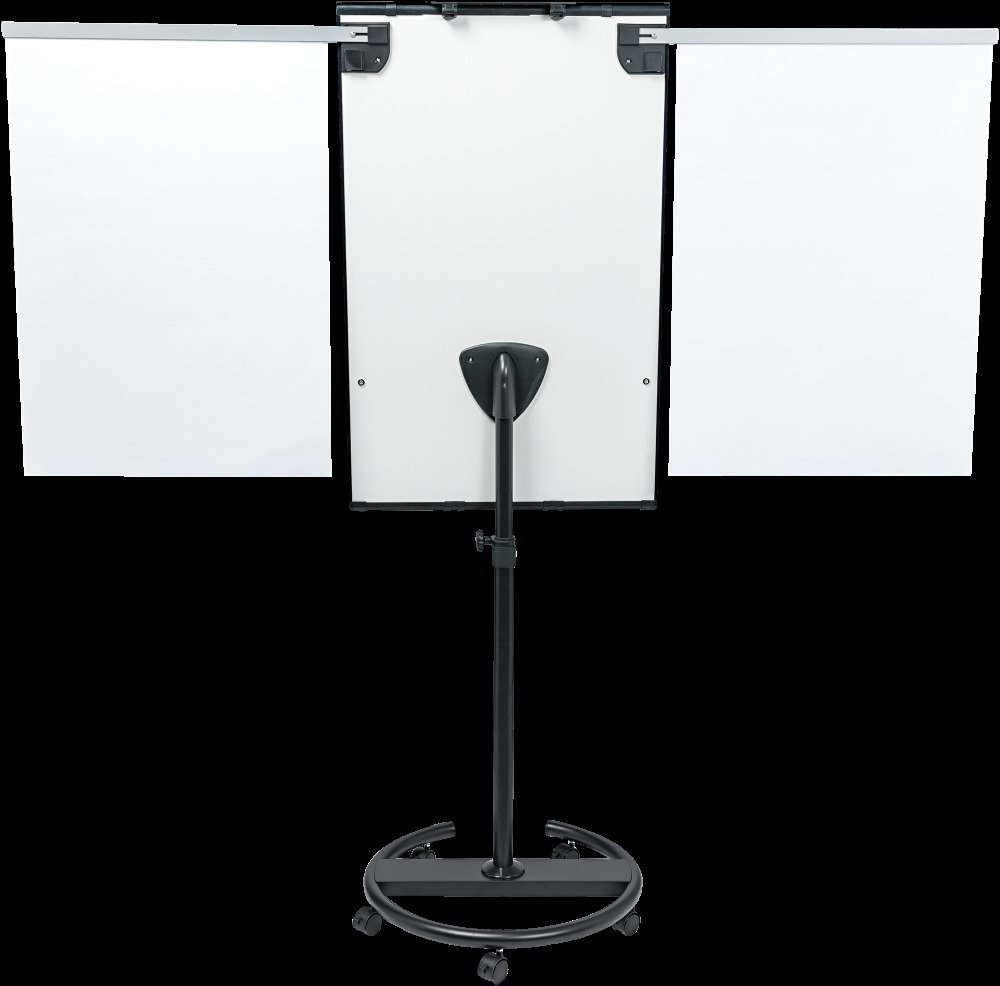 You can attach a flipchart paper pad or use the board as a whiteboard. It fits all standard paper pad formats. The board has magnetic fold-out side arms, which provide additional space. You can set the board at the ideal writing level, as it is height-adjustable. The lockable castors provide perfect stability and mobility. Additionally, it is easy to mount and you won't need any additional tools.