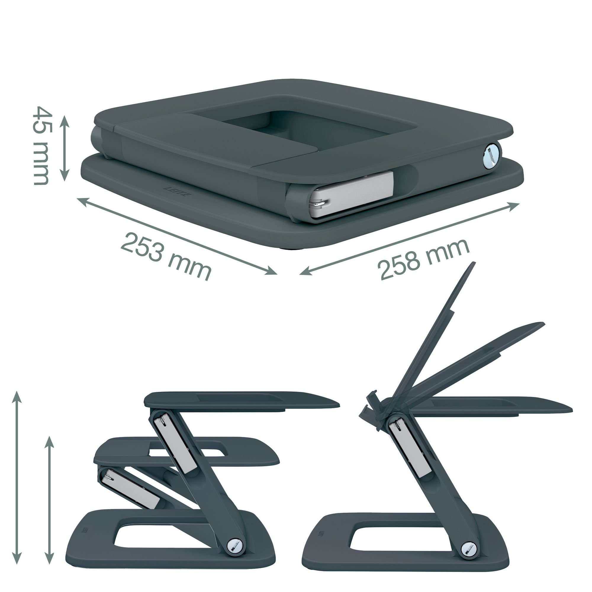 The Leitz Ergo Multi-Angle Laptop Riser raises the screen of your laptop to the perfect ergonomic height to increase your viewing comfort and help improve posture. Various height and angle combinations including horizontal alignment with a small footprint for compact desks.
