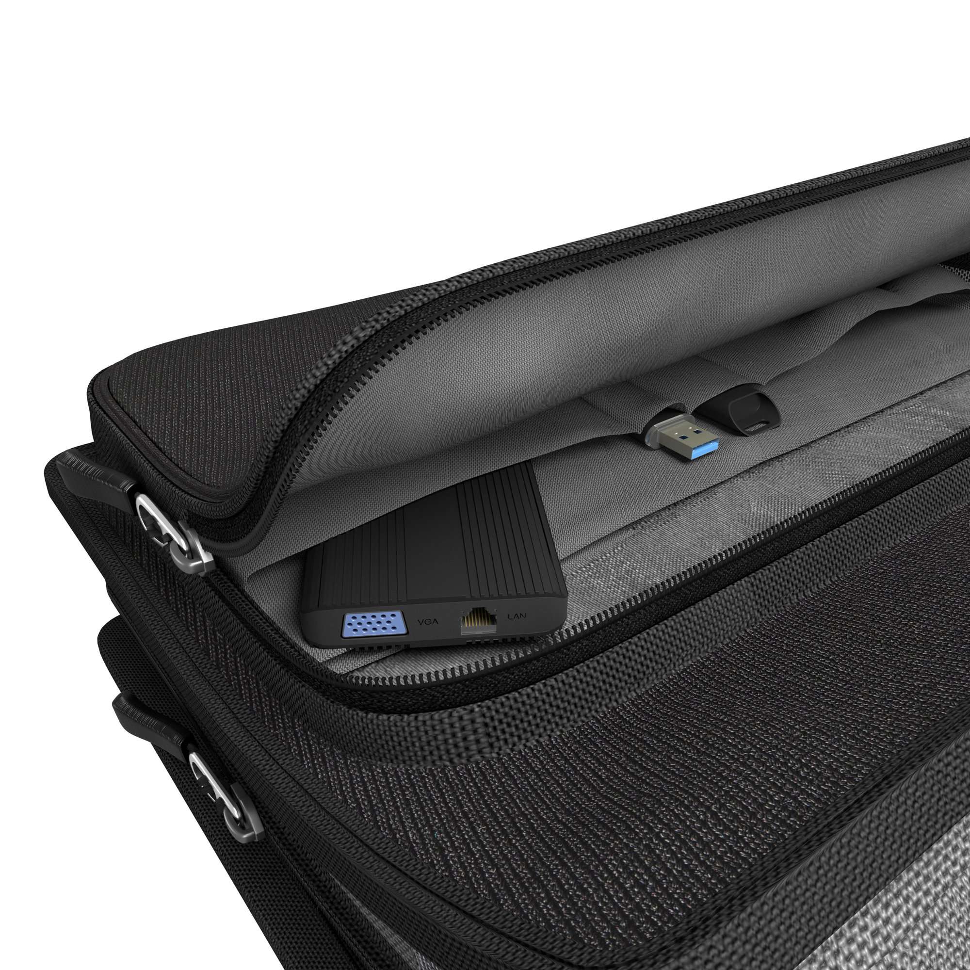Dual carry handles provide a secure grip and the included, removable shoulder strap adds hands-free carry options. The updated front pocket includes interior compartments and zips securely closed to keep accessories organized and close at hand. Able to accommodate a wide range of Chromebooks and laptops.