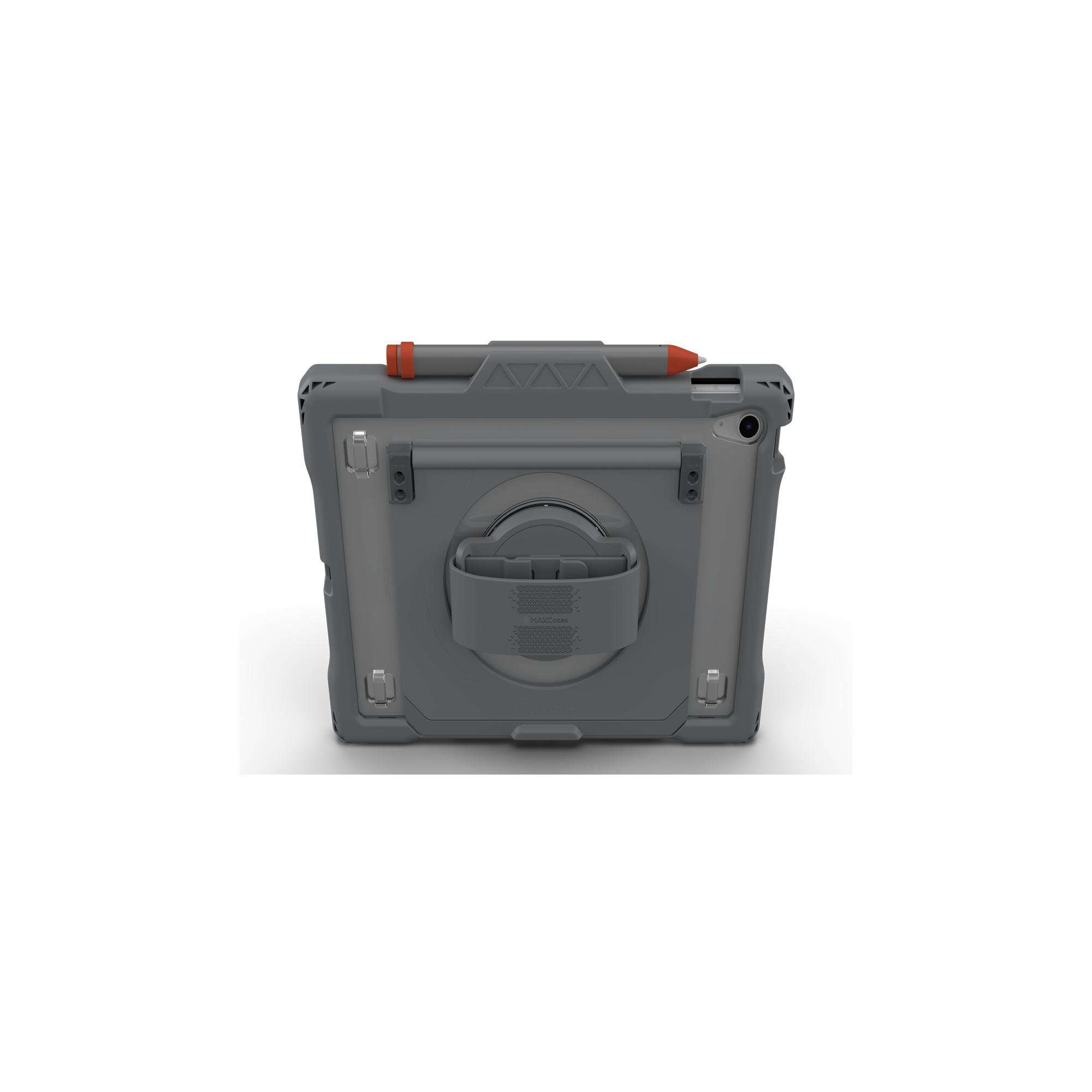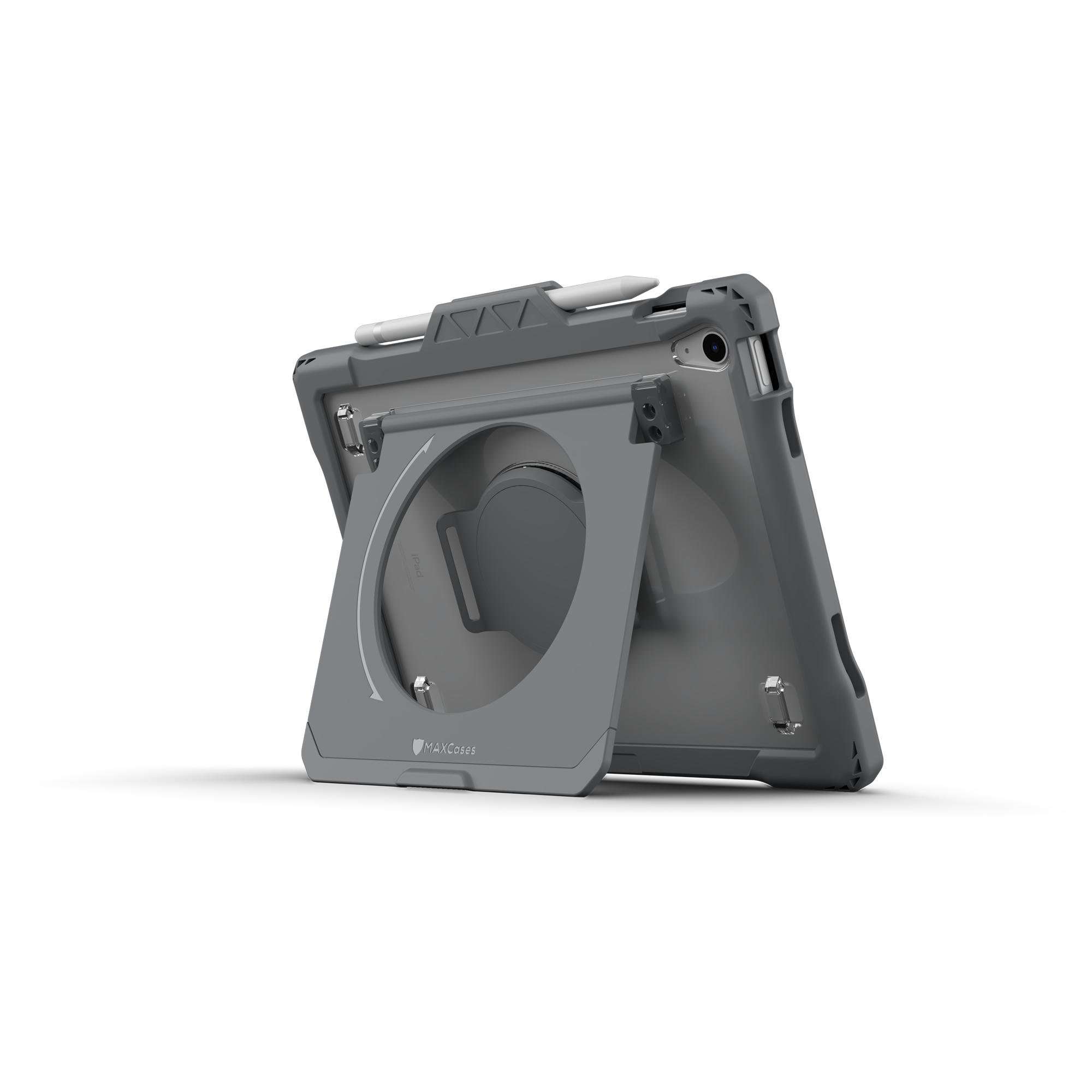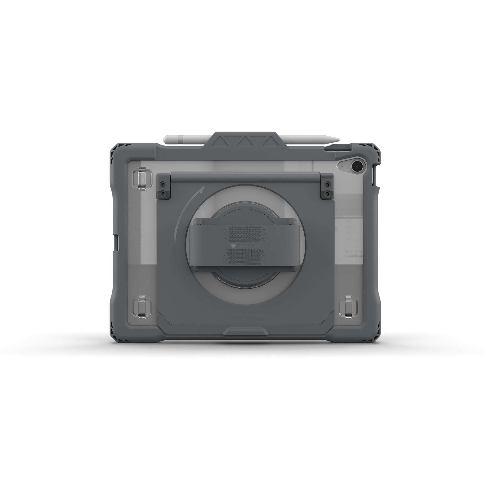 Featuring a rotating hand strap and the virtually-unbreakable FlexStand, the Shield Extreme-X2-H provides a perfect fit, handy features, and outstanding protection for the 10.9" iPad 10. Dual-layer bumpers deliver enhanced durability and shock dissipation, while the screen is safeguarded by a commercial-grade screen protector, for protection that meets MIL-STD 810G-516.6 standards for drop protection up to 6 feet. Users enjoy comfort and convenience with unlimited FlexStand positioning options, full 360-degree rotating silicone hand strap, and molded stylus holder that securely accommodates the Apple Pencil and Logitech Crayon. Allowing for easy cleaning, the hand strap is removable and replaceable. The custom design ensures easy access to all ports, openings, and buttons. Durable corner anchors make it easy to add an (optional) hand strap, shoulder strap or any clip-on accessory