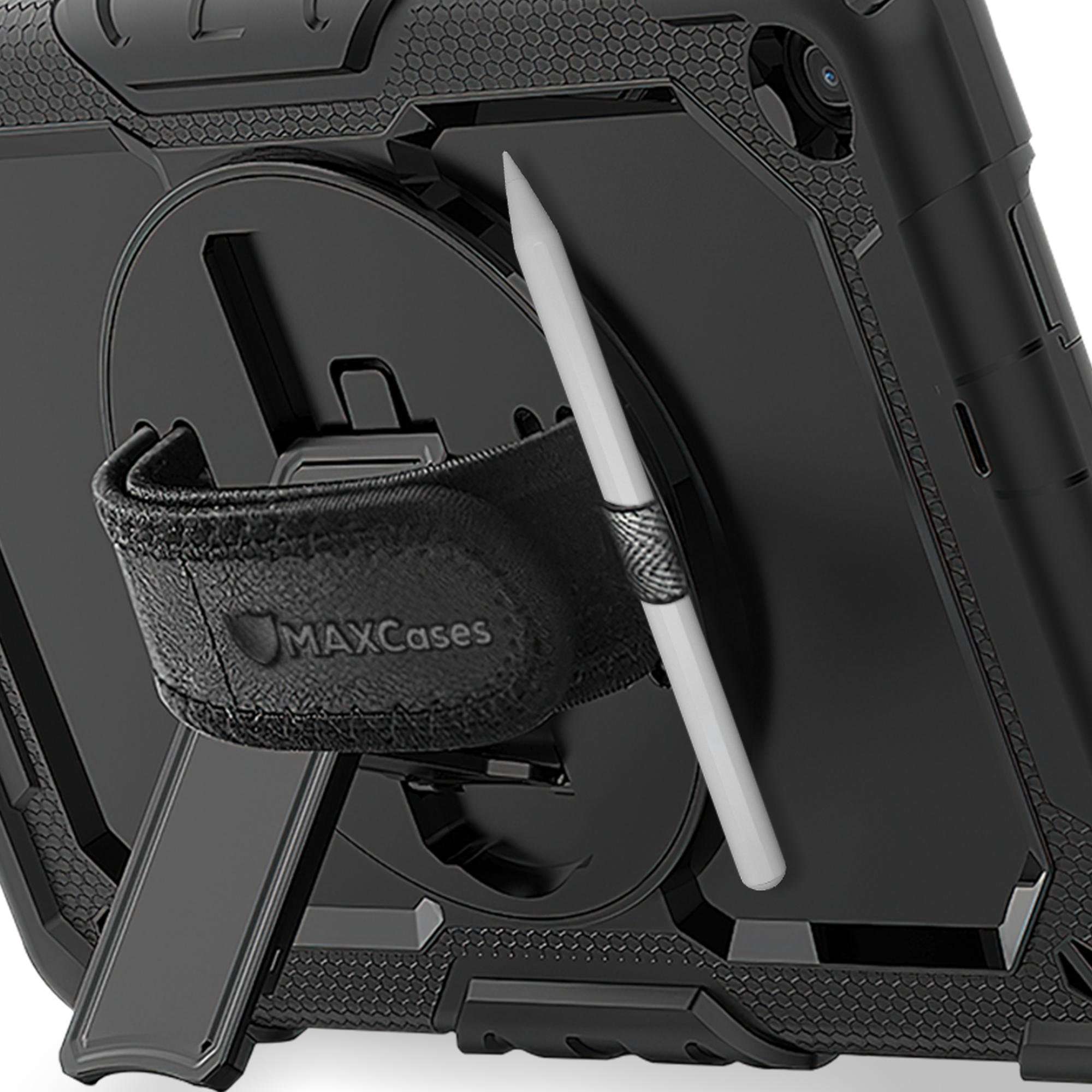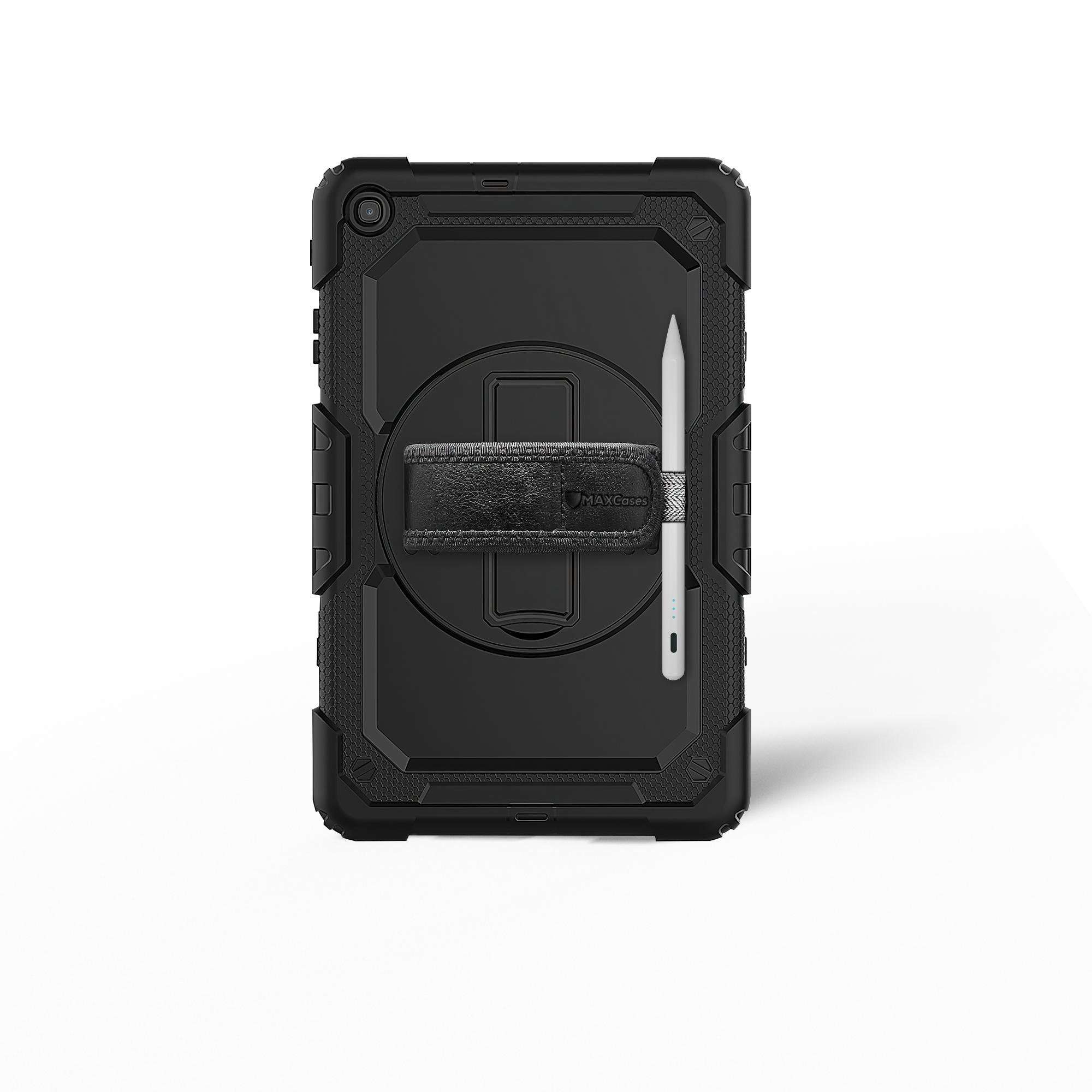 Enjoy flexible use and protect against drops, dings, and dirt with the MAXCases Shield case. The double-layer back design absorbs shock and safeguards corners against damage from a fall, while the commercial-grade screen protector prevents scratches. The two-position kickstand, rotating hand strap, and included shoulder strap provide versatile options for use. A convenient holder keeps your stylus close at hand.