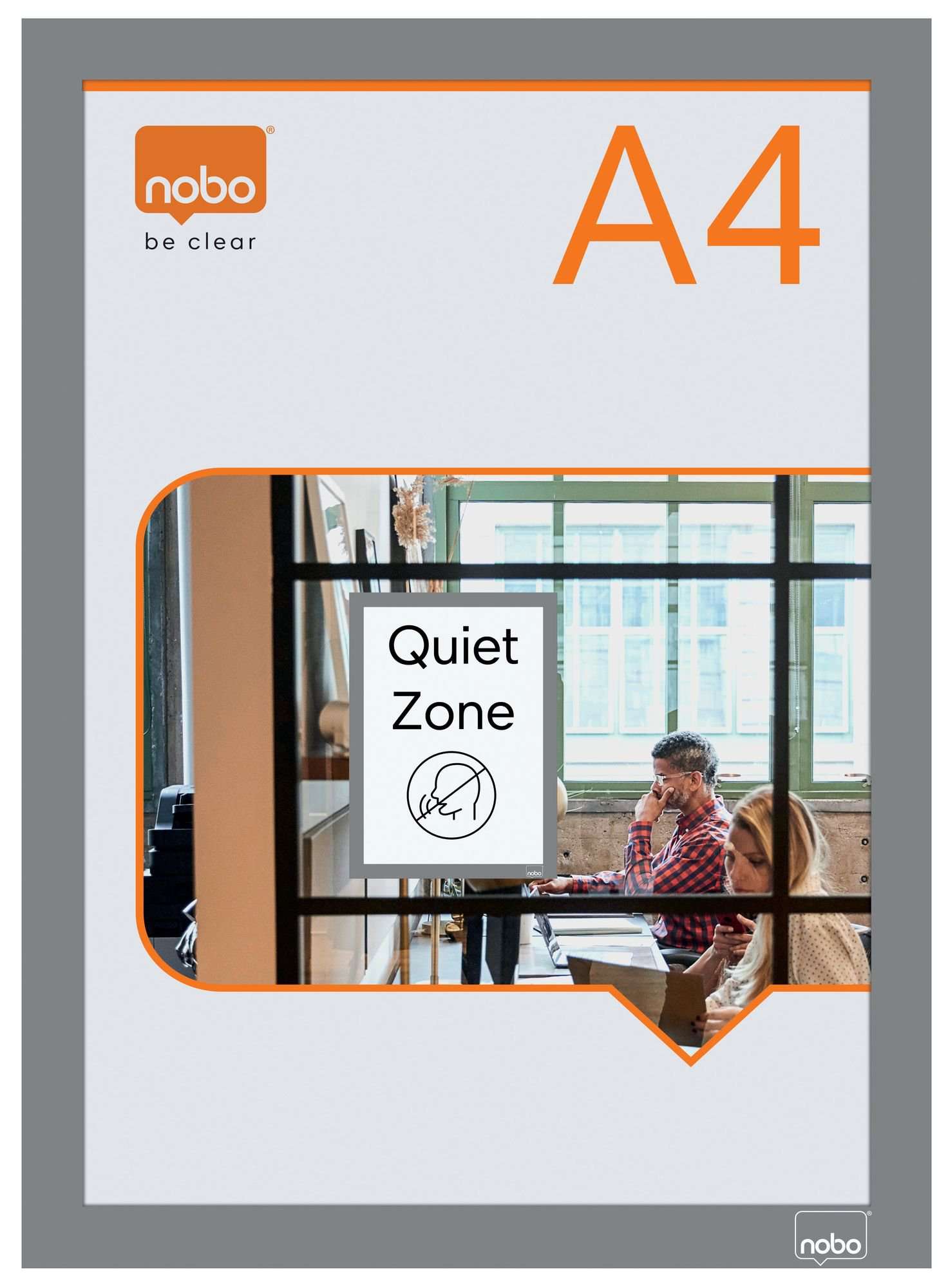 This magnetic poster frame attaches firmly to flat surfaces in either portrait or landscape format with its self-adhesive backer and can be used as a double-sided display on a glass surface. in either portrait or landscape format with its self-adhesive backer and the transparent matt cover helps protect content underneath and can be wiped clean.