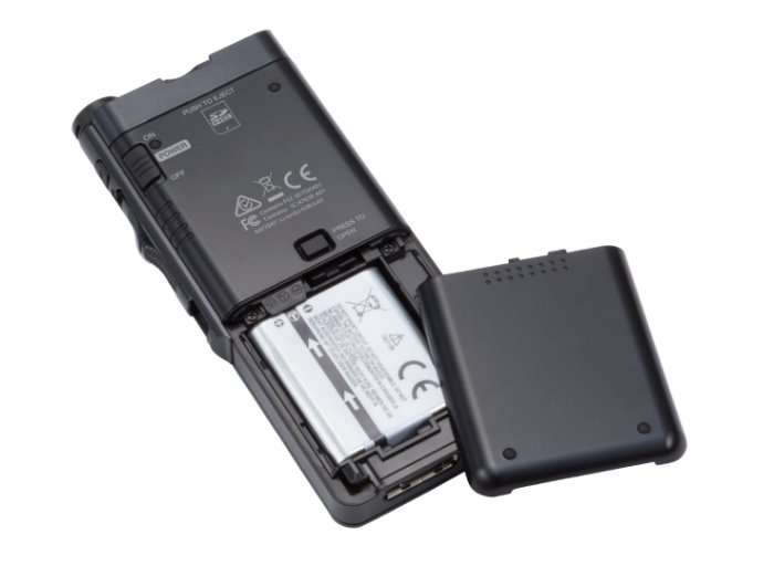 The device features low-noise omni-directional microphones with a built-in shock absorber to reduce handling noise. Additionally, the microphone housing incorporates a triple-layered pop-filter that blocks wind noise and plosives when speaking. For classic dictation, the main microphone records in an omni-directionality mode, while conference recording controls the directionality of the two microphones into a 90° layout, enabling high-quality stereo capture.